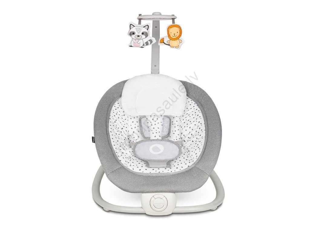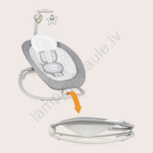 • Šūpuļkrēsliņam ir noņemama rotaļu arka ar karājošu rotaļlietu, kas nodrošina izklaidi spēļu laikā.