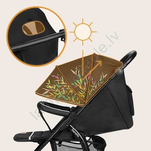 • Aprīkots ar filtru UPF 50+, kas efektīvi aizsargā bērnu no saules un ļauj mierīgi atpūsties.