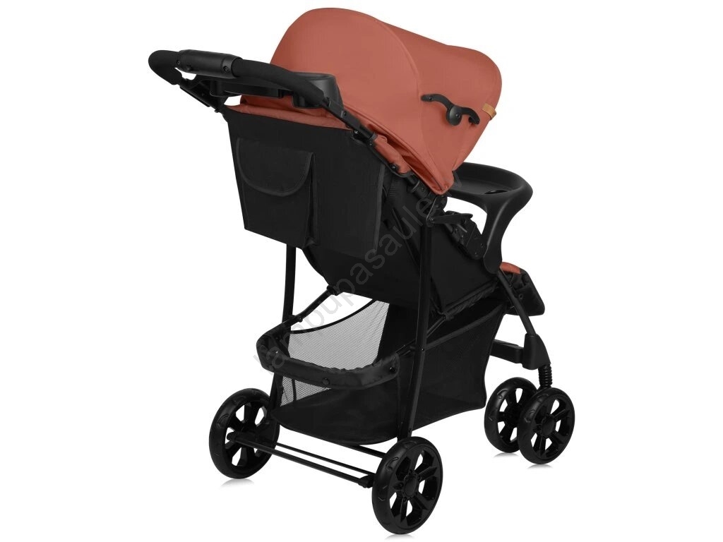 • Ratiņiem ir priekšējā aizsarga paplātes formā, kas ļauj bērnam nolikt pudeli vai uzkodu pastaigas laikā.