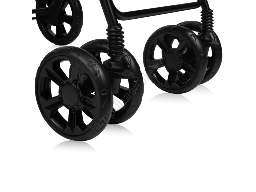 • Priekšējie riteņi papildus griežas par 360° un ir bloķējami taisnai braukšanai, nodrošinot lielāku ērtību.