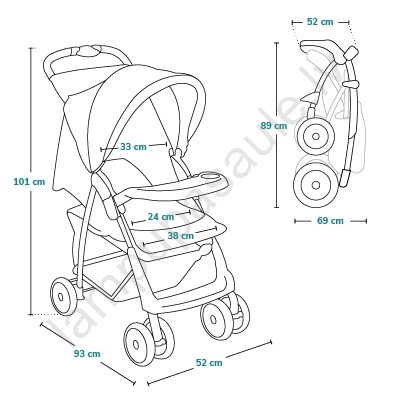 • Liela atpūtas virsma (līdz 91 cm izklātā stāvoklī) un augsts pārsegs nodrošina ērtu ratiņu lietošanu arī lielākiem bērniem.