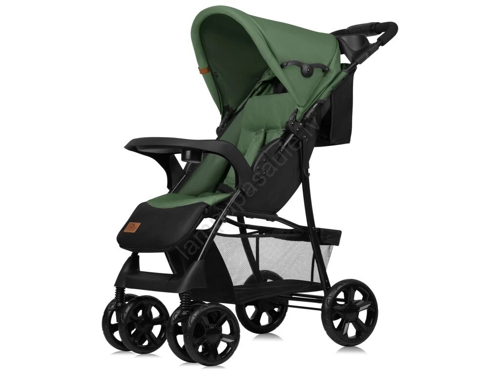 • Ratiņiem ir paplātes formas drošības barjera, kas ļauj bērnam nolikt pudeli vai uzkodu pastaigas laikā.