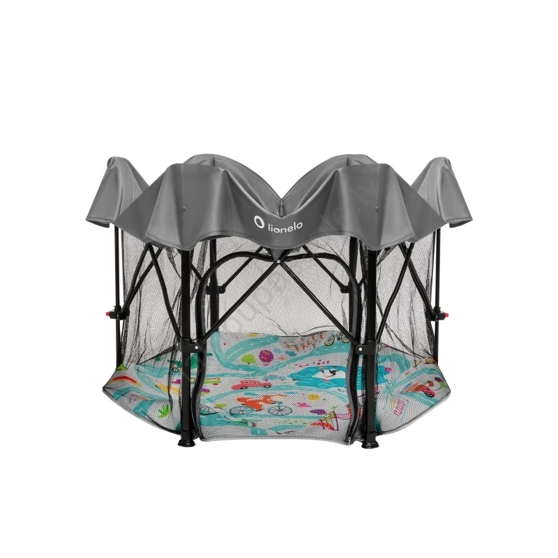 Lionelo - Bērnu rotaļu būris ROEL PLUS, pelēks, daudzkrāsains