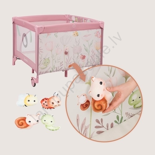 • Tajā ir iebūvēts paklājiņš ar krāsainiem dzīvnieku motīviem un rotaļlietām ar Velcro stiprinājumu, kas rosina ziņkāri un attīsta bērna iztēli un motoriskās prasmes.