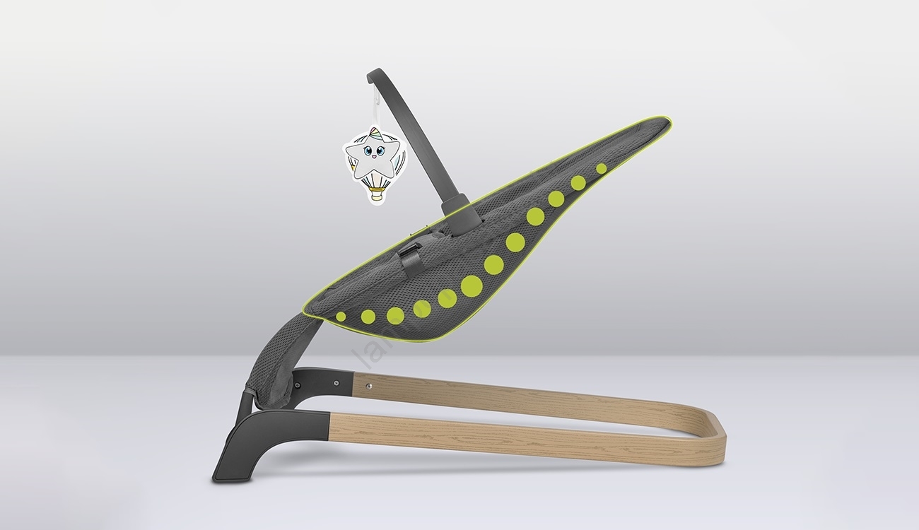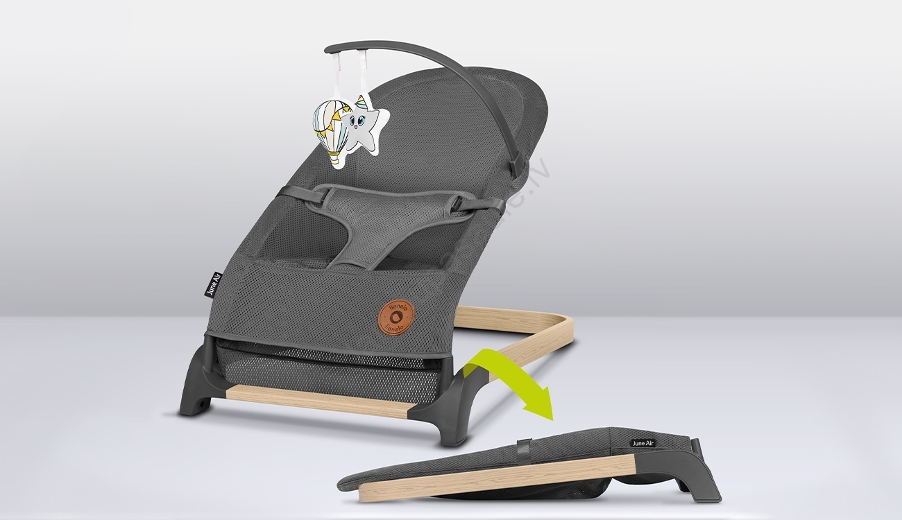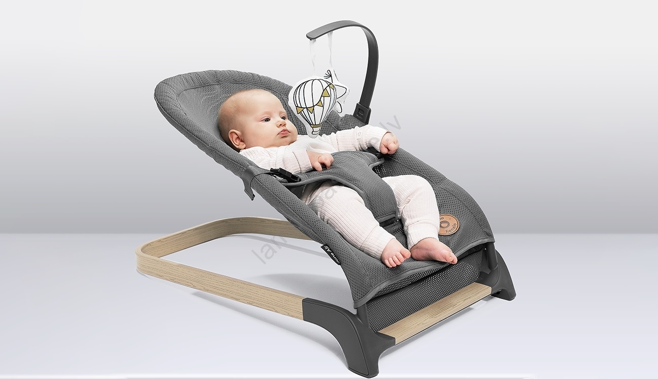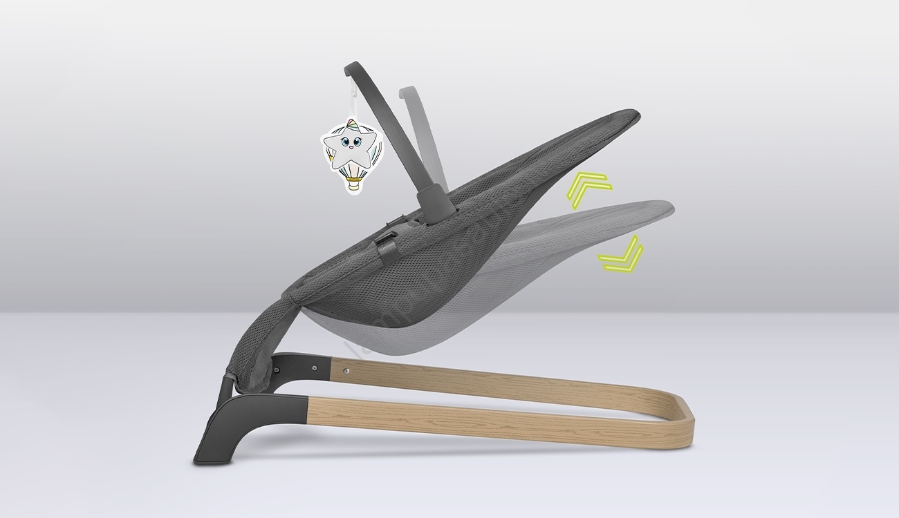 • Šūpuļkrēsliņš kustas bērna dabiskajās kustībās, tādējādi veicinot motorikas un līdzsvara attīstību.