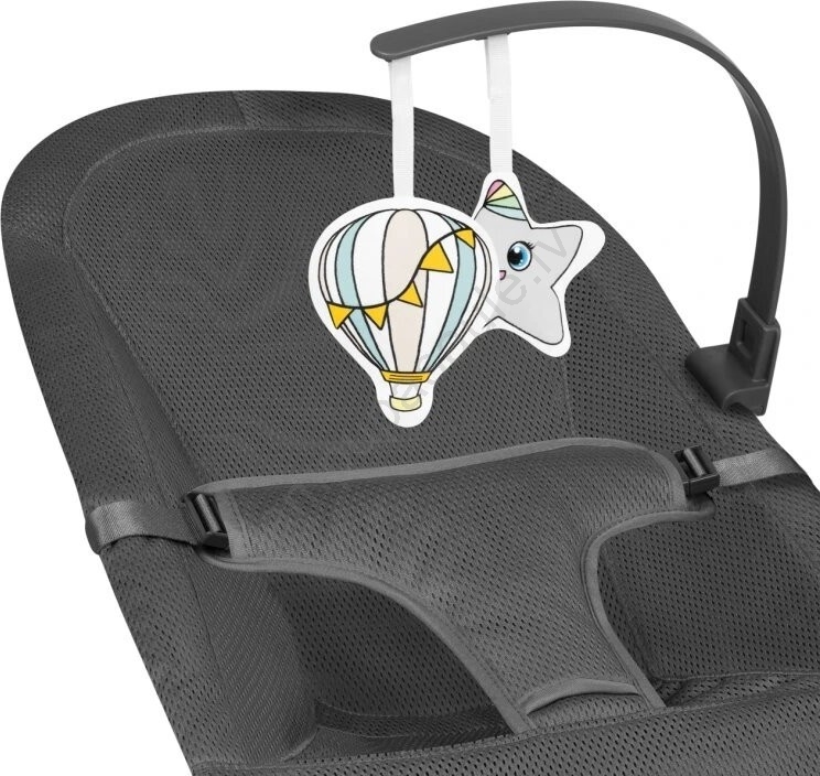 • Noņemama stīpa ar divām rotaļlietām piesaista uzmanību un attīsta motoriku.