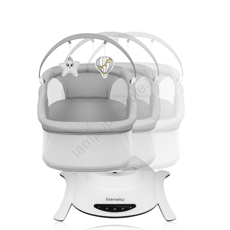 • Lionelo - Bērnu šūpuļkrēsls ar melodijām 2‑vienā BELLA 4xAA Grey Concrete + ar tālvadības pulti