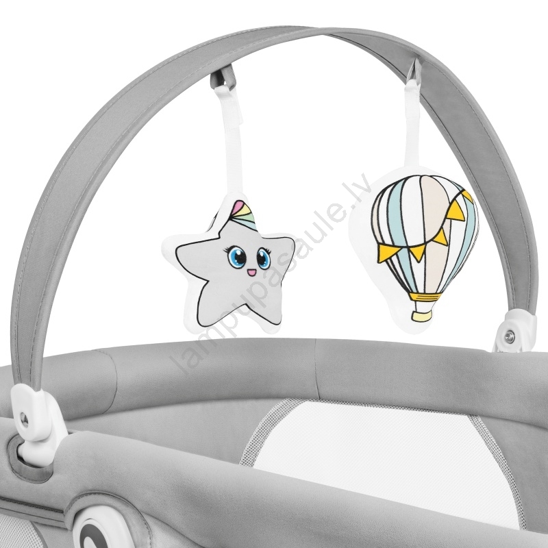 • Automātiska bērna kustību noteikšana, 12 melodijas, noņemams rotaļu stienis ar 3 rotaļlietām.