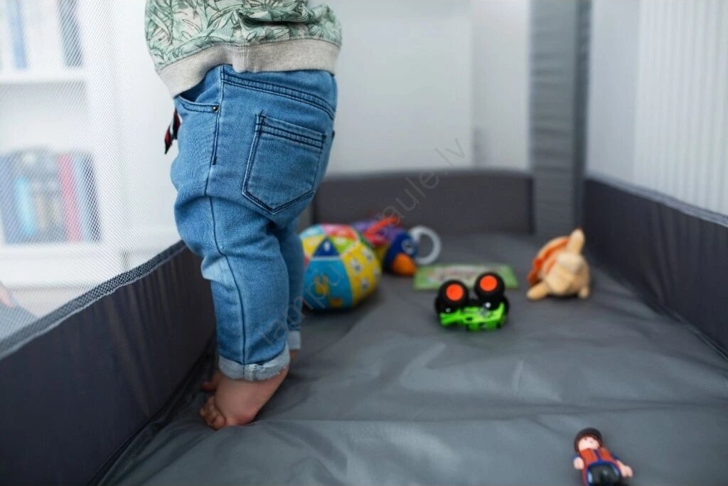 • Tīkla sānu paneļi ļauj saglabāt acu kontaktu ar bērnu un nodrošina optimālu ventilāciju.
