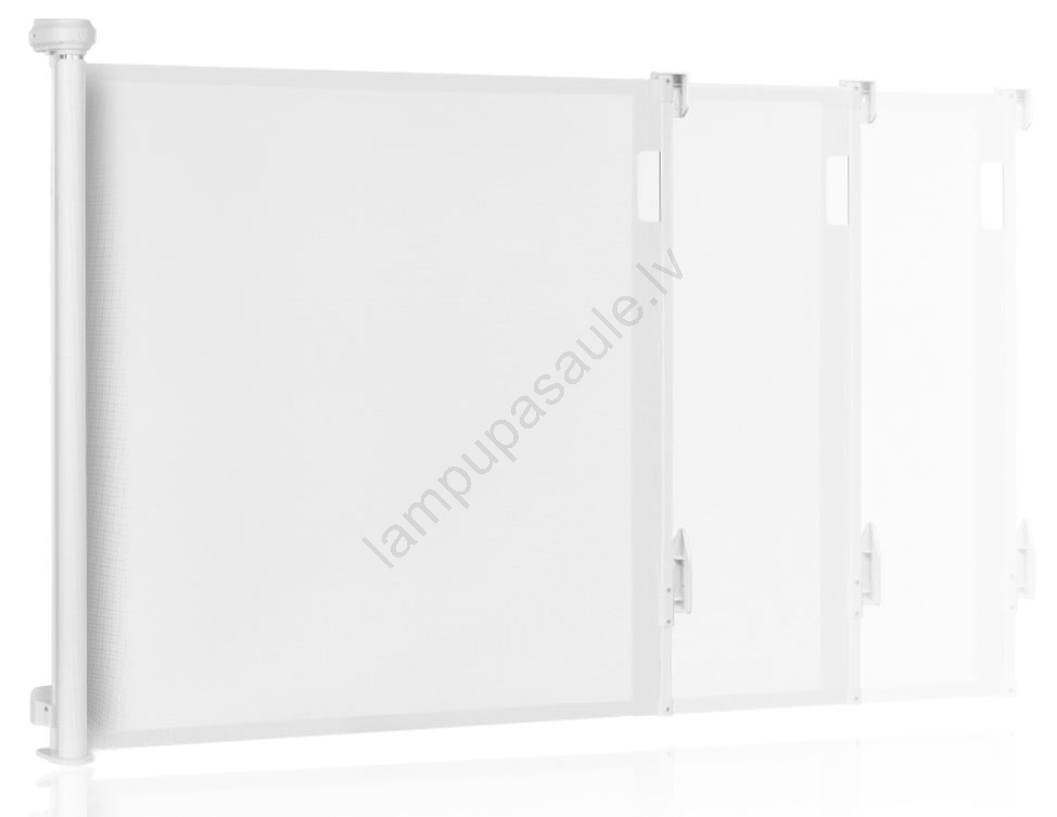 • Komplektā iekļauti trīs montāžas komplekti, tāpēc vienus vārtiņus var uzstādīt trīs dažādās vietās atkarībā no aktuālajām vajadzībām.