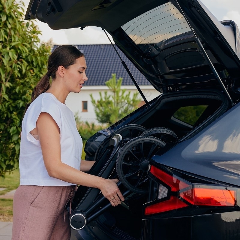 • Pievienotā plecu siksna atvieglo salocītu ratu pārnēsāšanu.