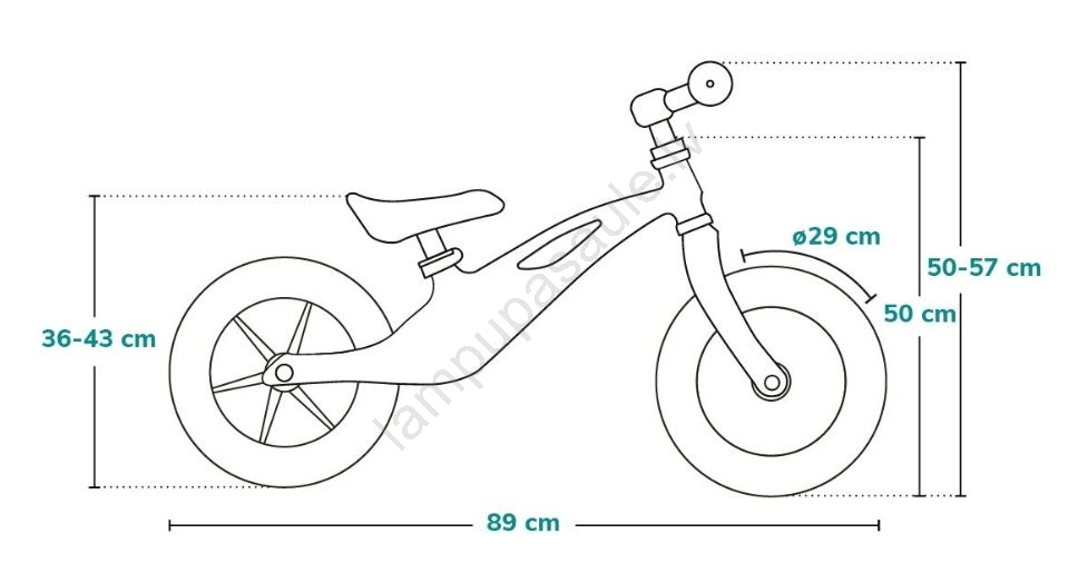 • Augstuma regulējamas stūres (50 - 57 cm) un sēdeklis (36 - 43 cm) nodrošina pilnīgu pielāgošanu bērniem līdz 6 gadu vecumam.