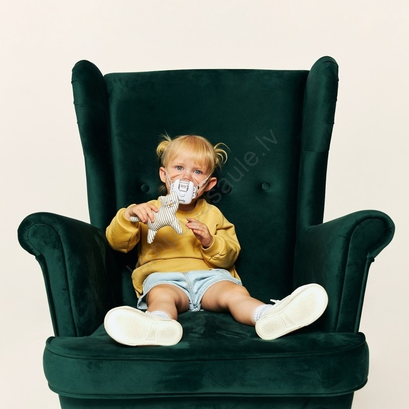 • Viegla lietošana bez nepieciešamības ierīci turēt rokā - pateicoties elastīgajām siksniņām inhalatoru var nēsāt kā masku, ļaujot bērnam, piemēram, zīmēt inhalācijas laikā.