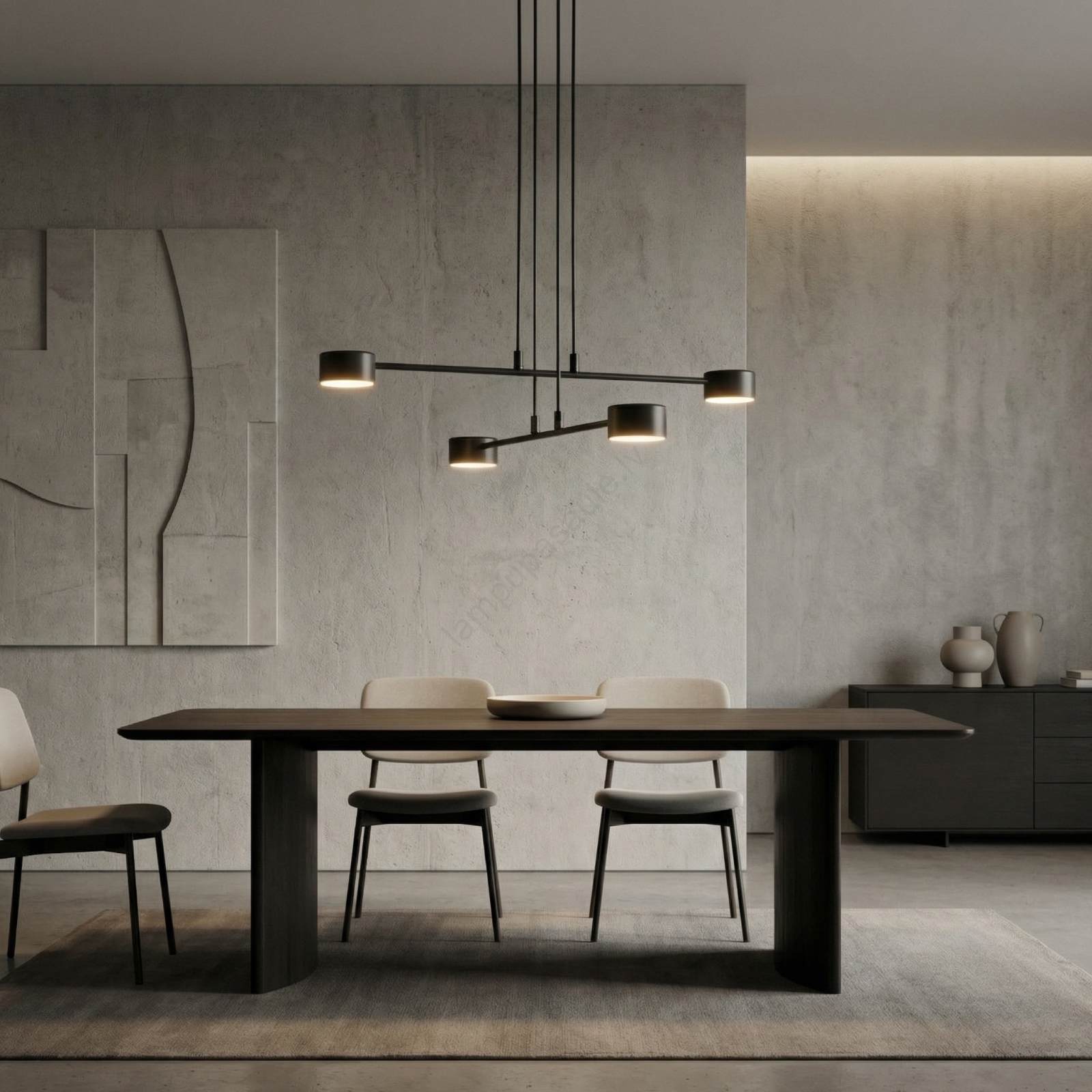 Lustra ar auklu MODUS 4xGX53/12W/230V melna izceļas ar jauku un funkcionālu dizainu.  Spuldze ar GX53 cokolu irpiemērota lampai. Šeit, varat iegādāties citas spuldzes par izdevīgām cenām. Tā būs interesants jūsu mājas papildinājums.