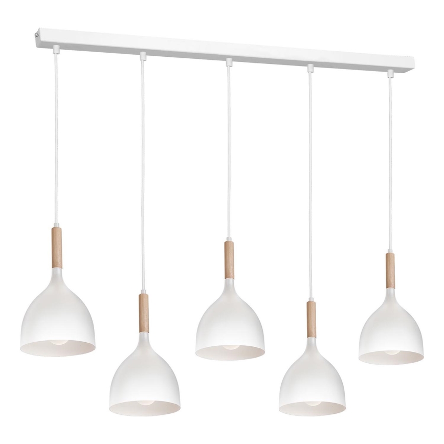 • Lustra ar auklu NOAK 5xE27/60W/230V balta/koka