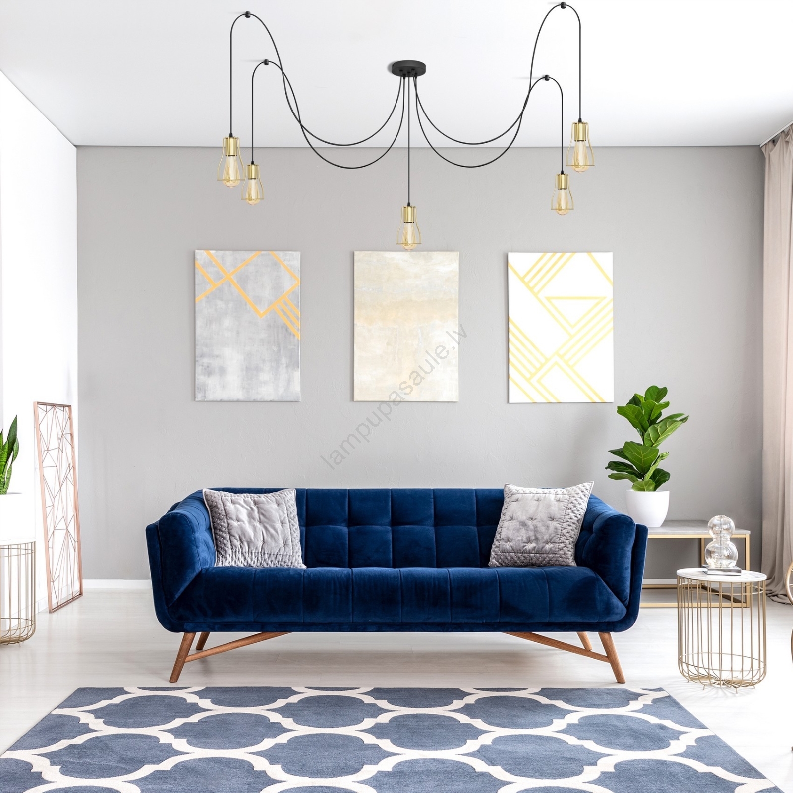 Lustra ar auklu TUBE 5xE27/15W/230V zirneklis melna/zelta izceļas ar jauku un funkcionālu dizainu.  Spuldze ar E27 cokolu irpiemērota lampai. Šeit, varat iegādāties citas spuldzes par izdevīgām cenām. Tā būs interesants jūsu mājas papildinājums.