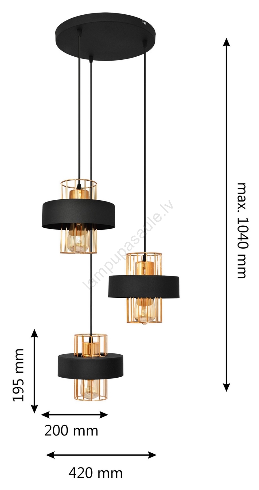 Lustra ar auklu VOLTA 3xE27/15W/230V melna/zelta | Lampupasaule