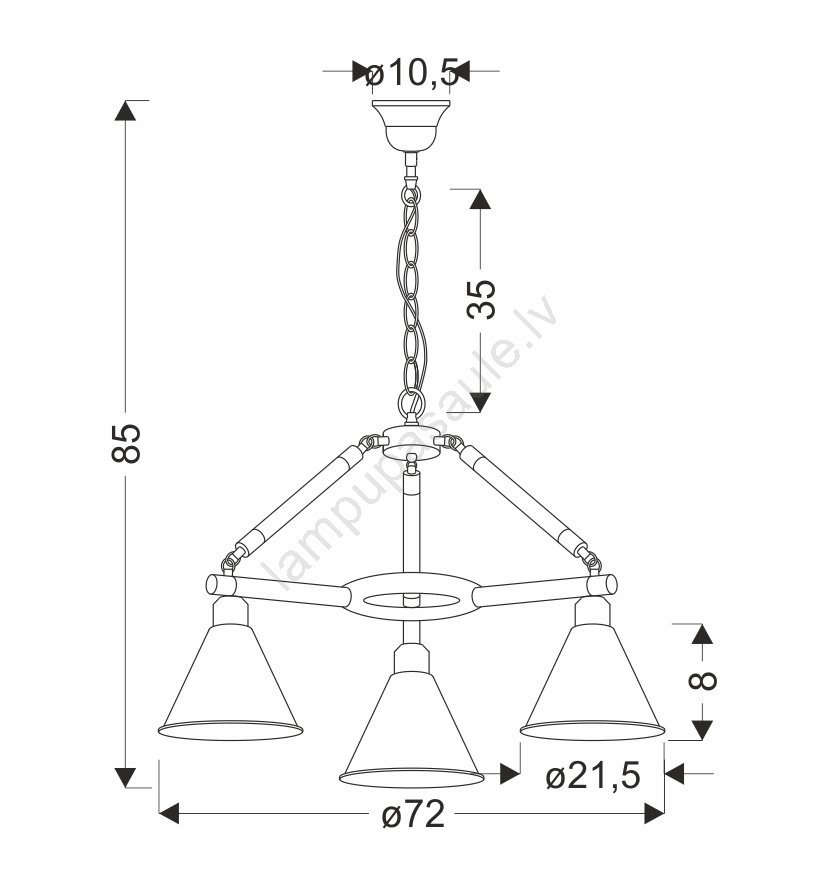 Lustra ar ķēdi NEGRU 3xE27/40W/230V melna/brūna | Lampupasaule