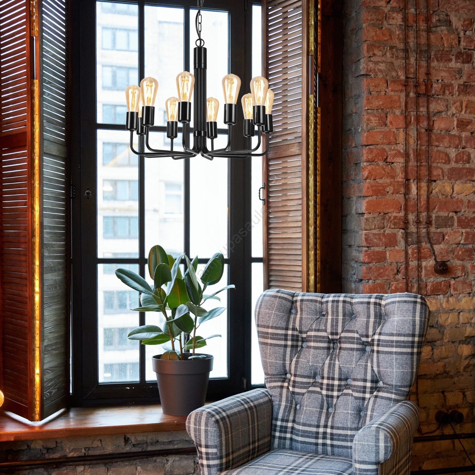 Lustra ar ķēdi 10xE27/60W/230V melna izceļas ar jauku un funkcionālu dizainu.  Spuldze ar E27 cokolu irpiemērota lampai. Šeit, varat iegādāties citas spuldzes par izdevīgām cenām. Tā būs interesants jūsu mājas papildinājums.