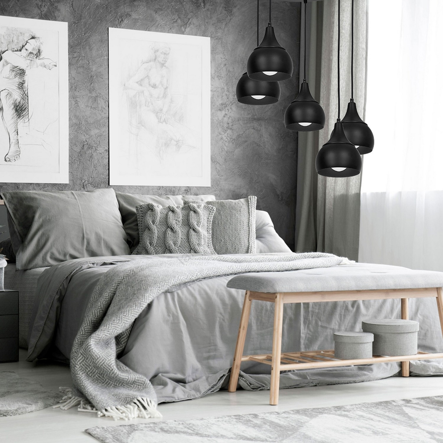 Lustra uz auklas AKTAN 5xE27/60W/230V melna apaļa | Lampupasaule