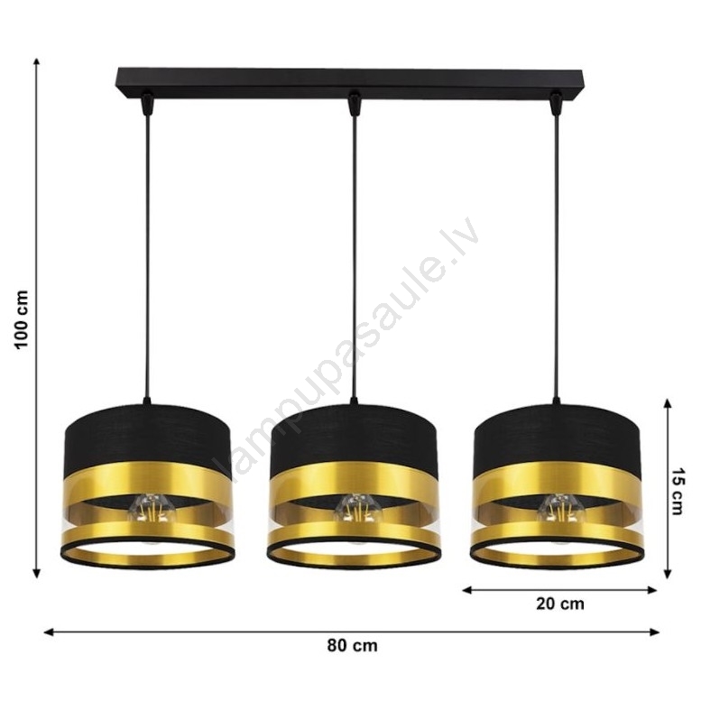 Lustra uz auklas MILO 3xE27/60W/230V zelta/melna | Lampupasaule