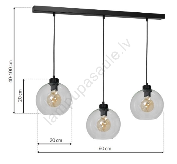 Lustra uz auklas SOFIA 3xE27/60W/230V caurspīdīga | Lampupasaule
