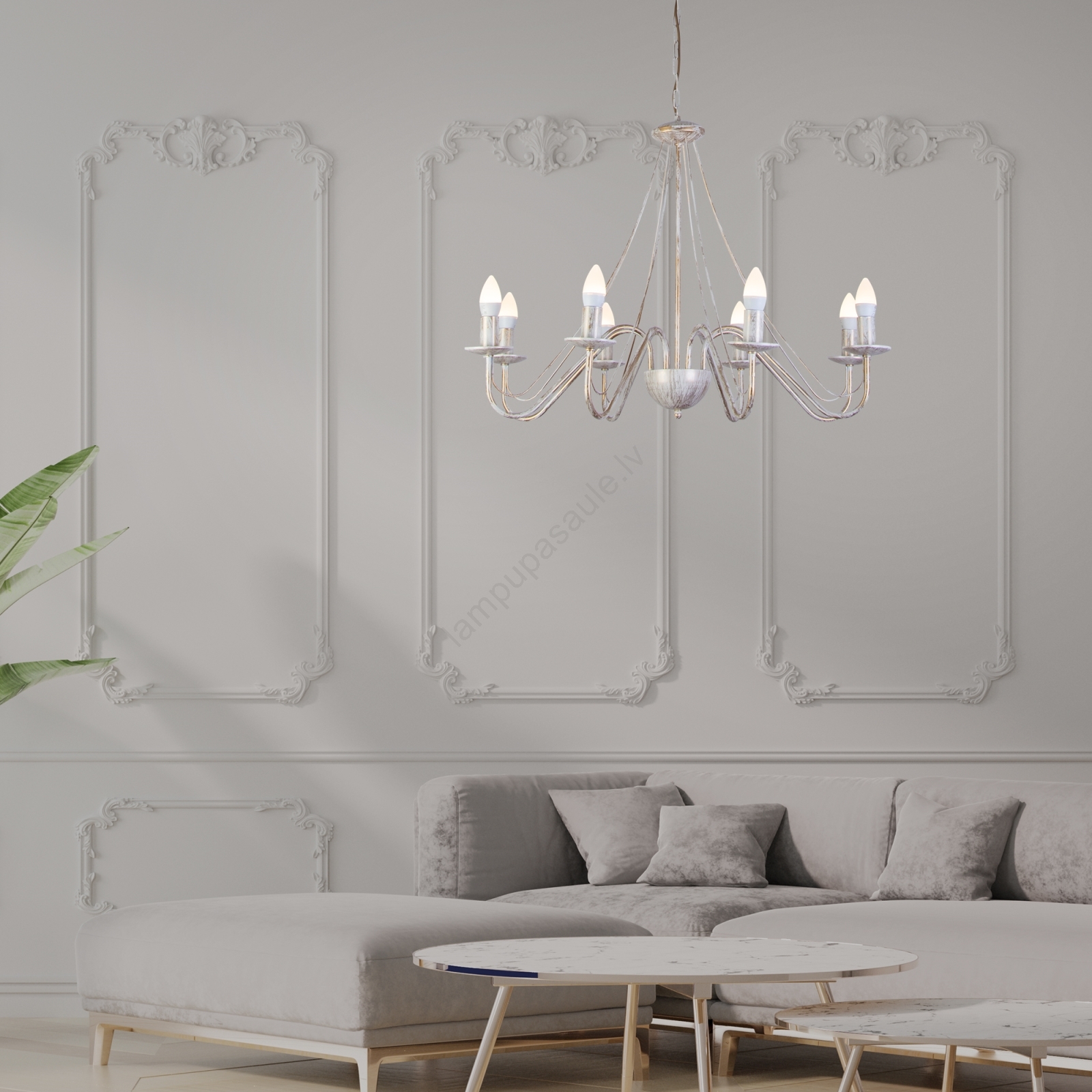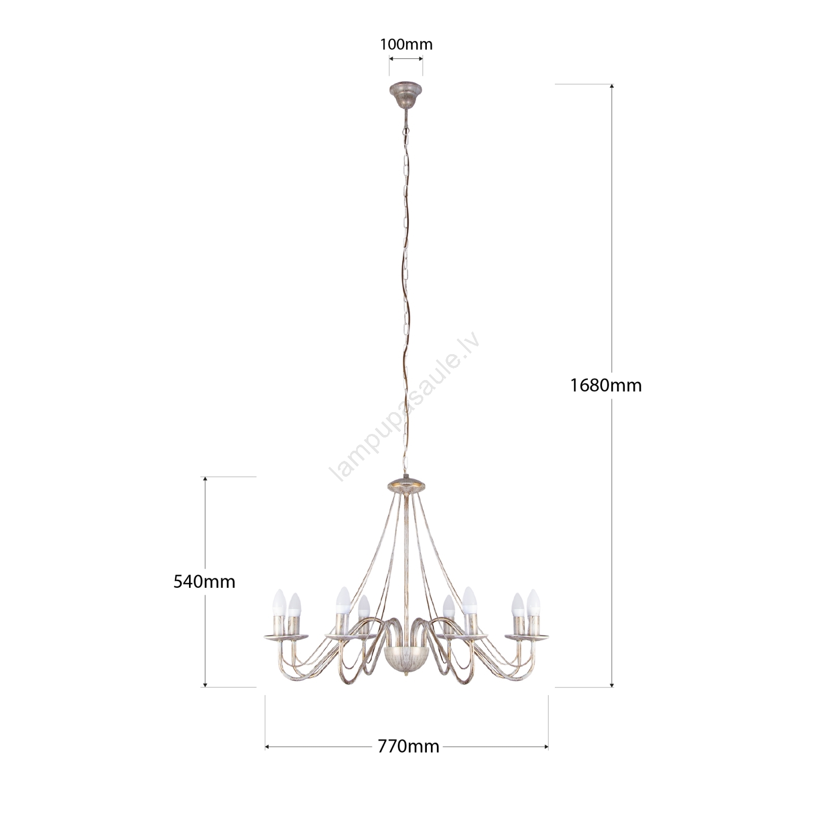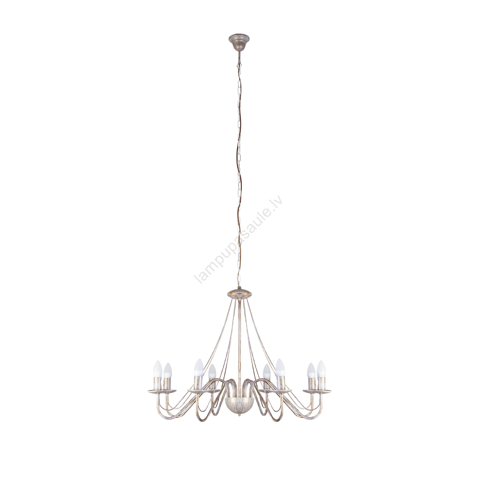 • Lustra uz ķēdes MALBO 8xE14/10W/230V balta/zelta/patina