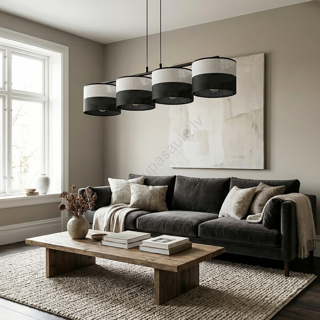 • Lustra uz troses KARBON 4xE27/15W/230V melna/pelēka
