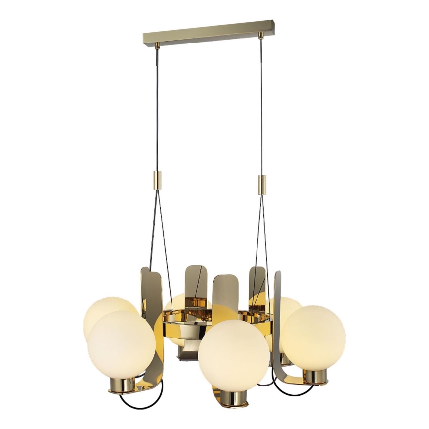 Lustra uz troses REGGIO 6xE27/40W/230V zelta krāsā izceļas ar jauku un funkcionālu dizainu.  Spuldze ar E27 cokolu irpiemērota lampai. Šeit, varat iegādāties citas spuldzes par izdevīgām cenām. Tā būs interesants jūsu mājas papildinājums.