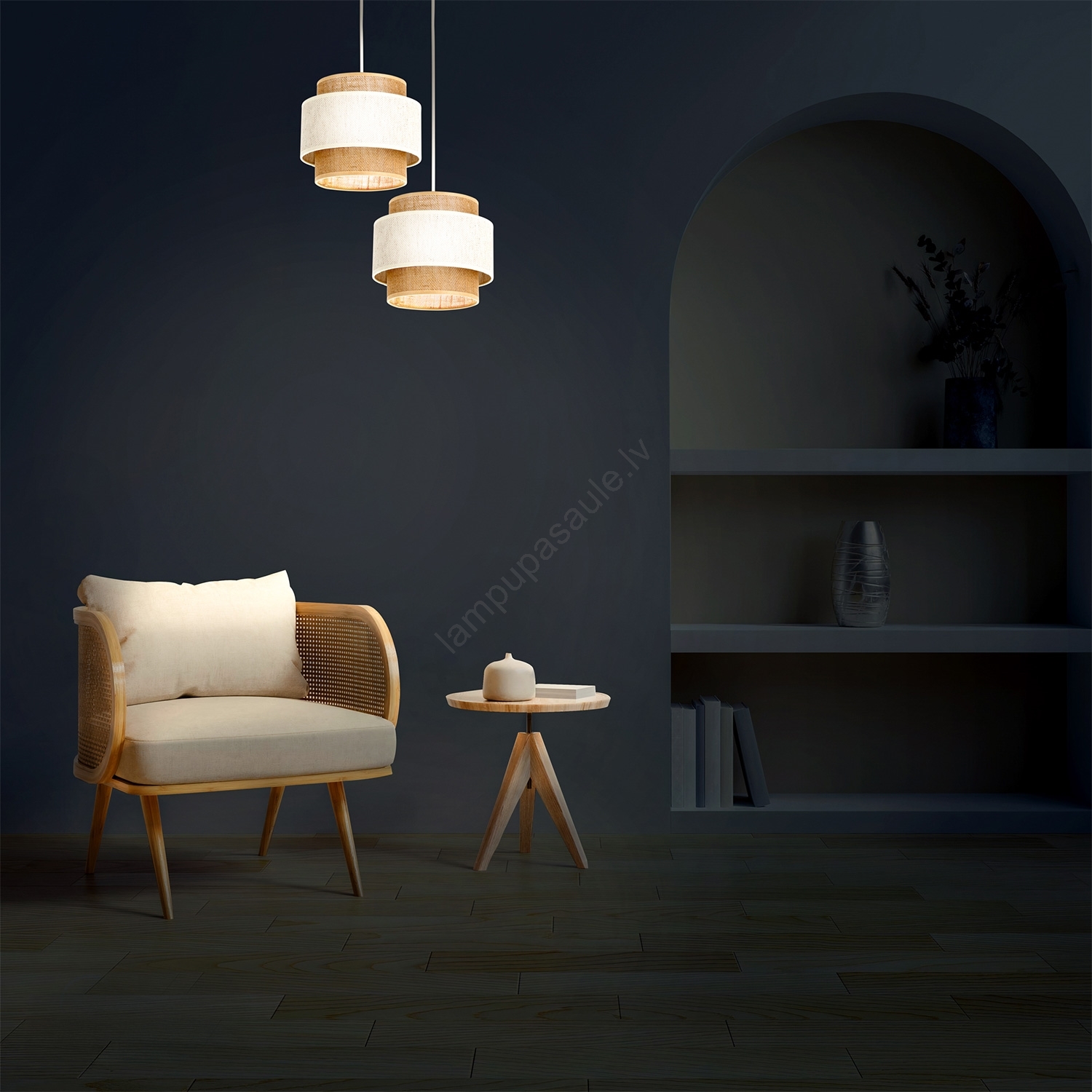 Lustra uz vada BOHO 2xE27/60W/230V krēmkrāsas/džuta | Lampupasaule