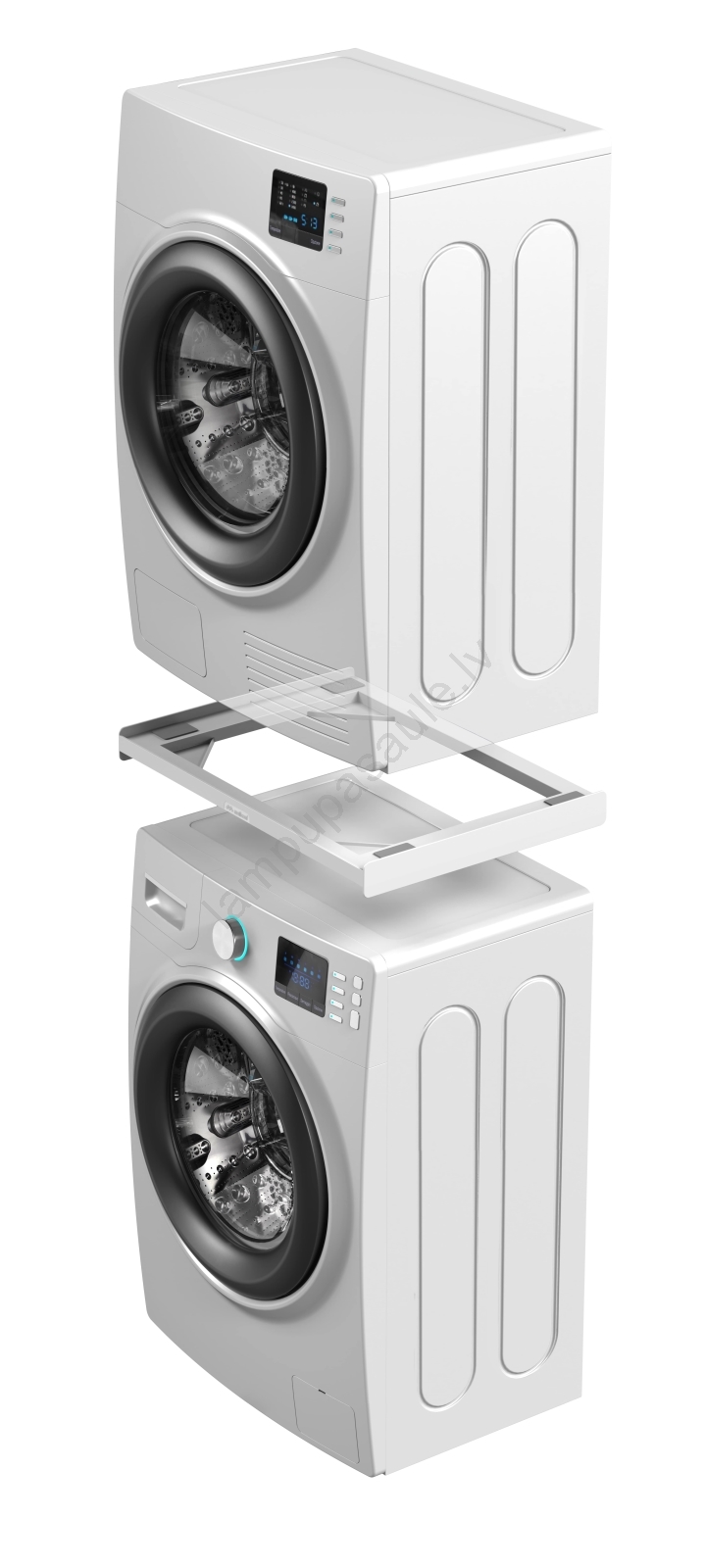 • Starplika ir izstrādāta drošai veļas mazgājamās mašīnas un žāvētāja izvietošanai kaudzē, kas ievērojami ietaupa vietu mājoklī.