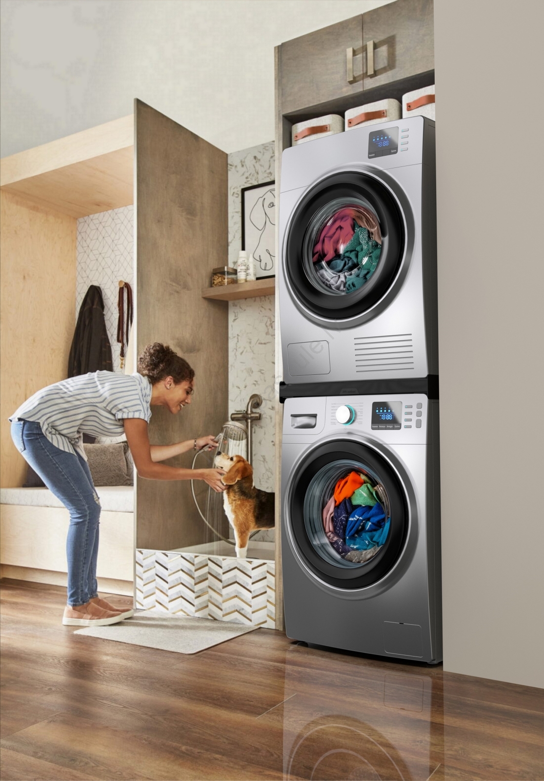 • Starpslānis ir paredzēts drošai veļasmašīnas un žāvētāja uzstādīšanai viens virs otra, kas būtiski ietaupa vietu mājoklī.