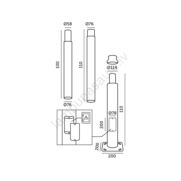 • Stieņa diametrs: 5,8 cm.