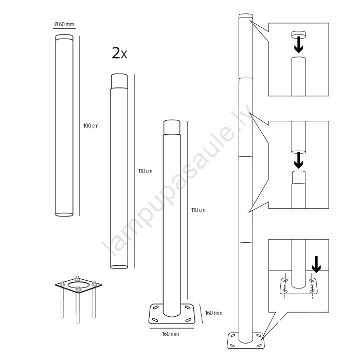 Metāla stabs BASE āra apgaismojuma mastam, 4 m, Ø 60 mm, melns | Lampupasaule