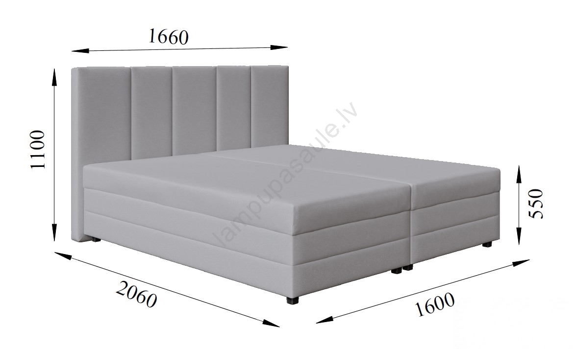 • Guļamās virsmas izmērs: 160 x 200 cm.