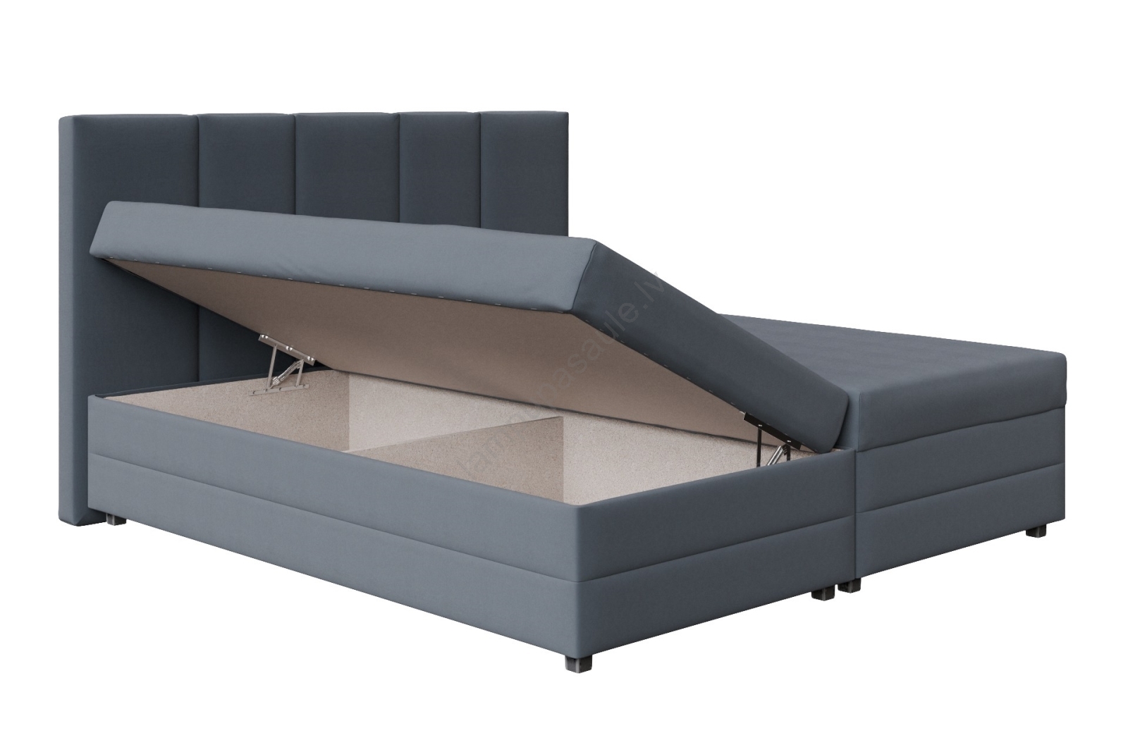 • Polsterēta gulta ISABEL 160x200 ar atsperu matraci un uzglabāšanas nodalījumu, pelēka