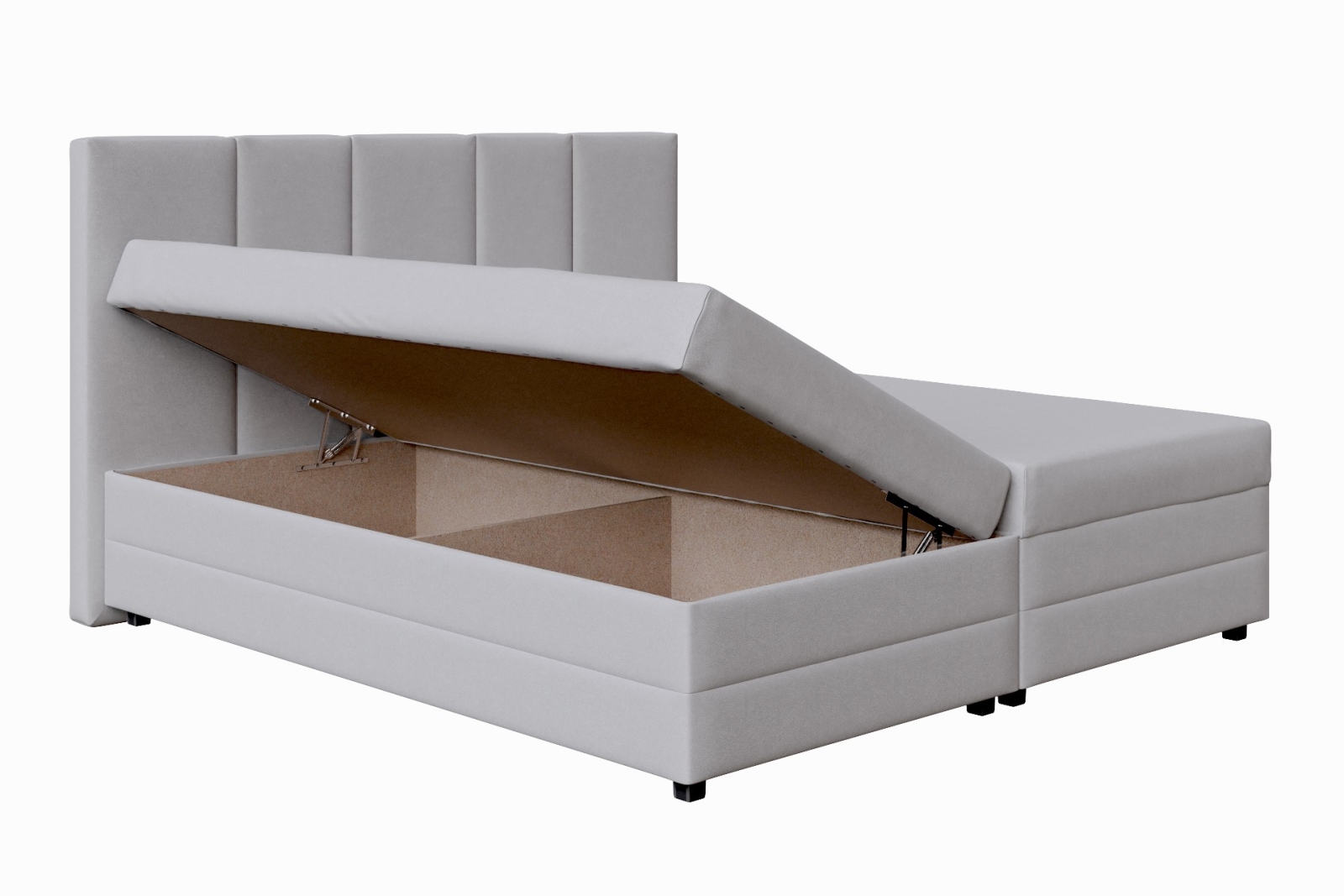 Polsterēta gulta ISABEL 180x200 ar atsperu matraci un uzglabāšanas nodalījumu, gaiši pelēka