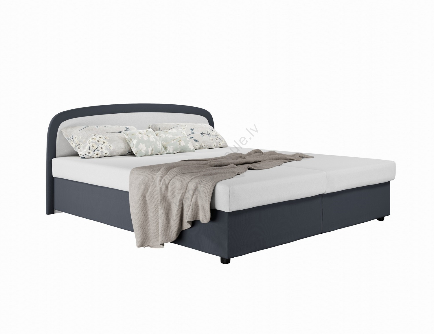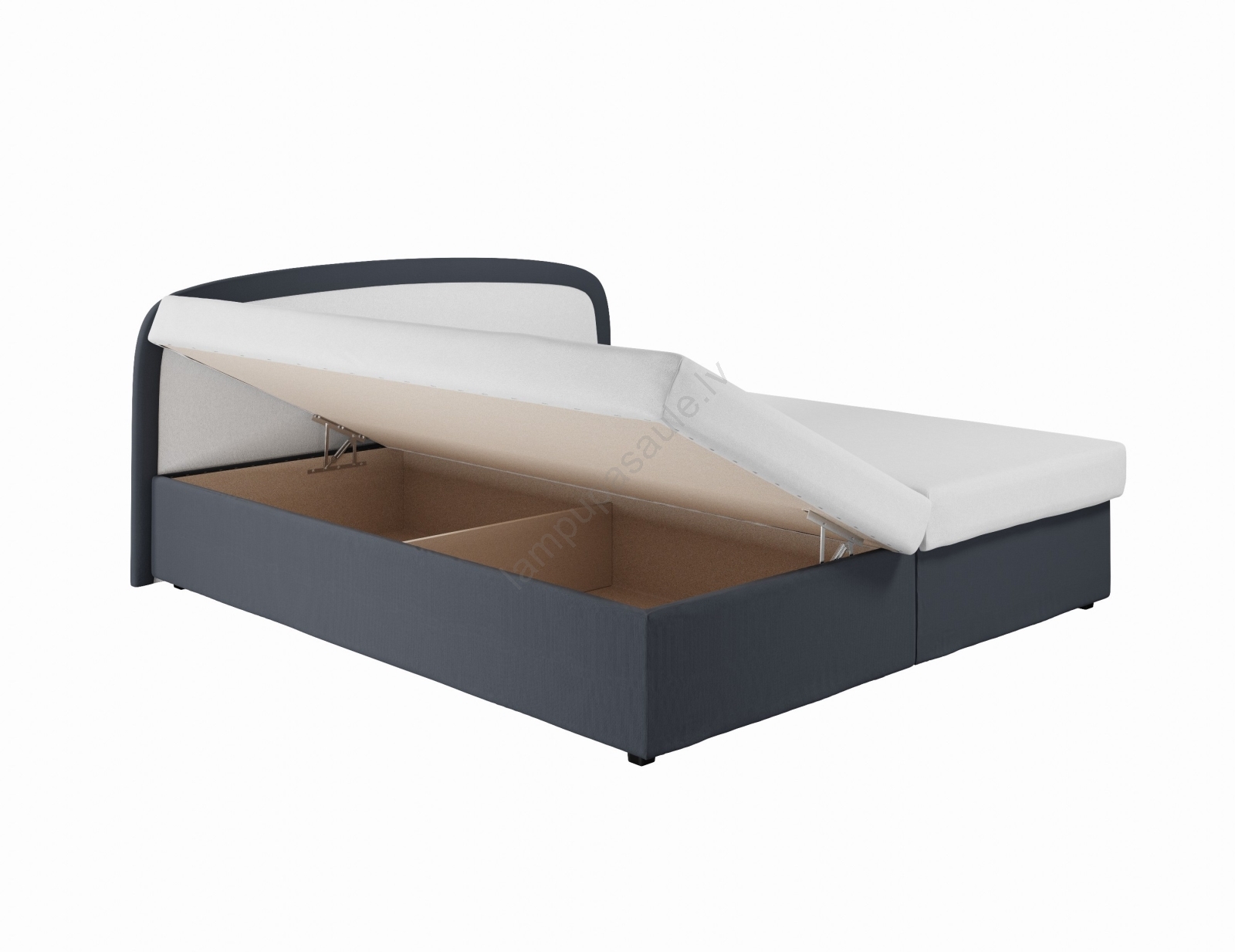 Polsterēta gulta MALIA 160x200 ar atsperu matraci un uzglabāšanas nodalījumu, pelēka