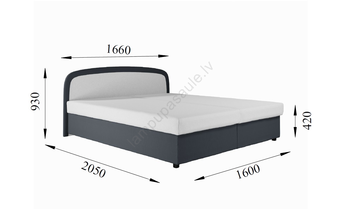 • Tapecēta divguļamā gulta ar atsperu matračiem lepojas ar izsmalcinātu, elegantu galvgali.