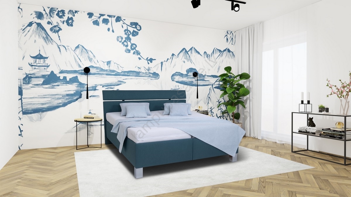 • Polsterēta gulta ALIS ar matraci un ietilpīgu uzglabāšanas nodalījumu, 160x200 cm, petrolejas krāsā