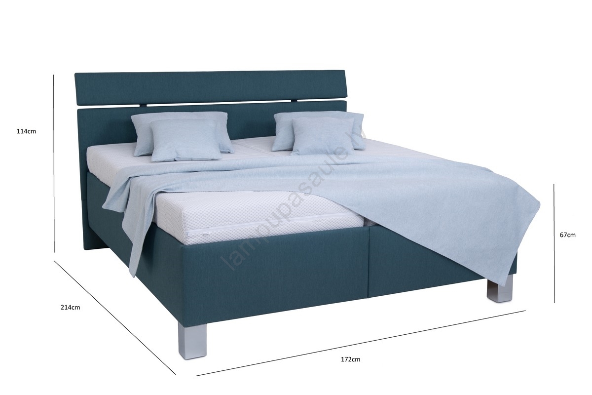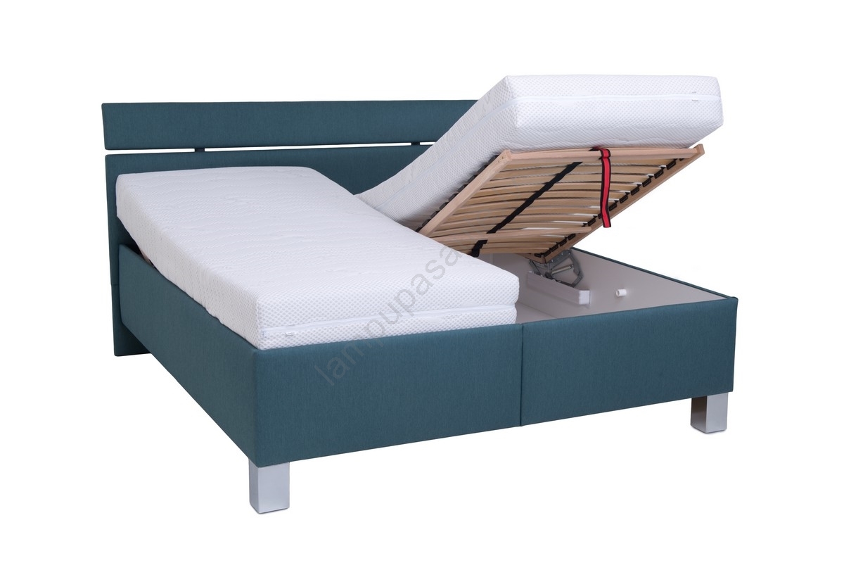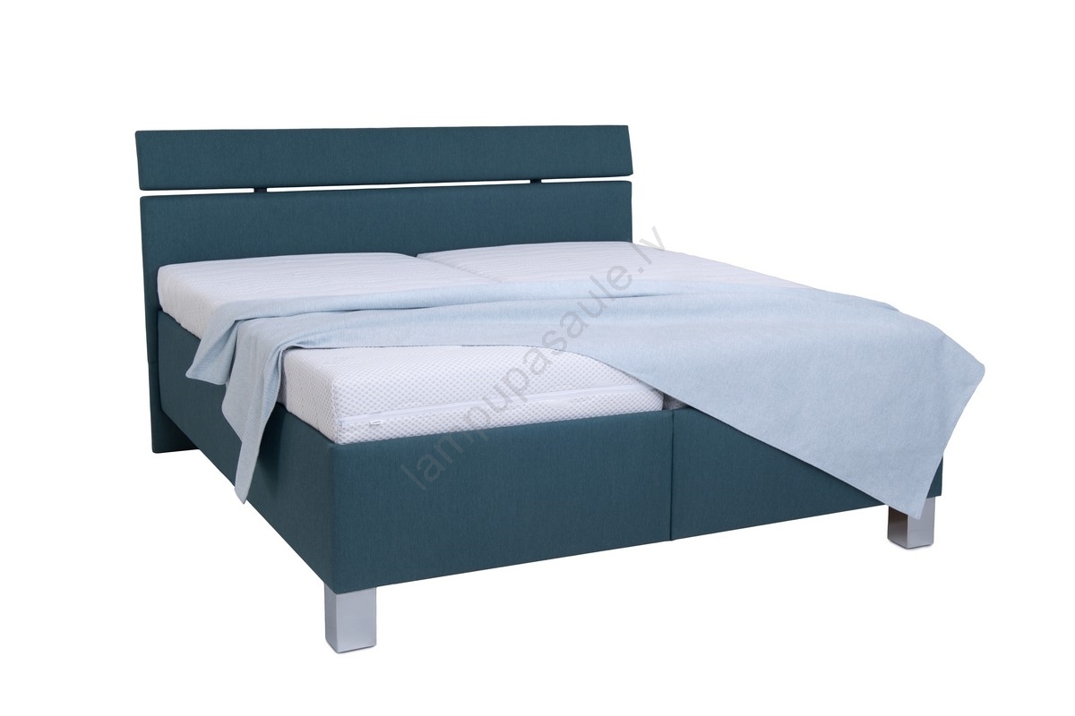 • Polsterēta divvietīga gulta ar brīvi novietotām matracēm — nodrošina maksimālu komfortu un praktiskas funkcijas pilnvērtīgai atpūtai.