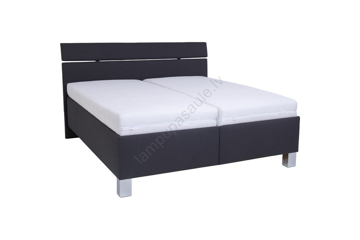 • Tapisēta divvietīga gulta ar brīvi novietotām madracēm piedāvā maksimālu komfortu un praktiskas funkcijas ideālai atpūtai.