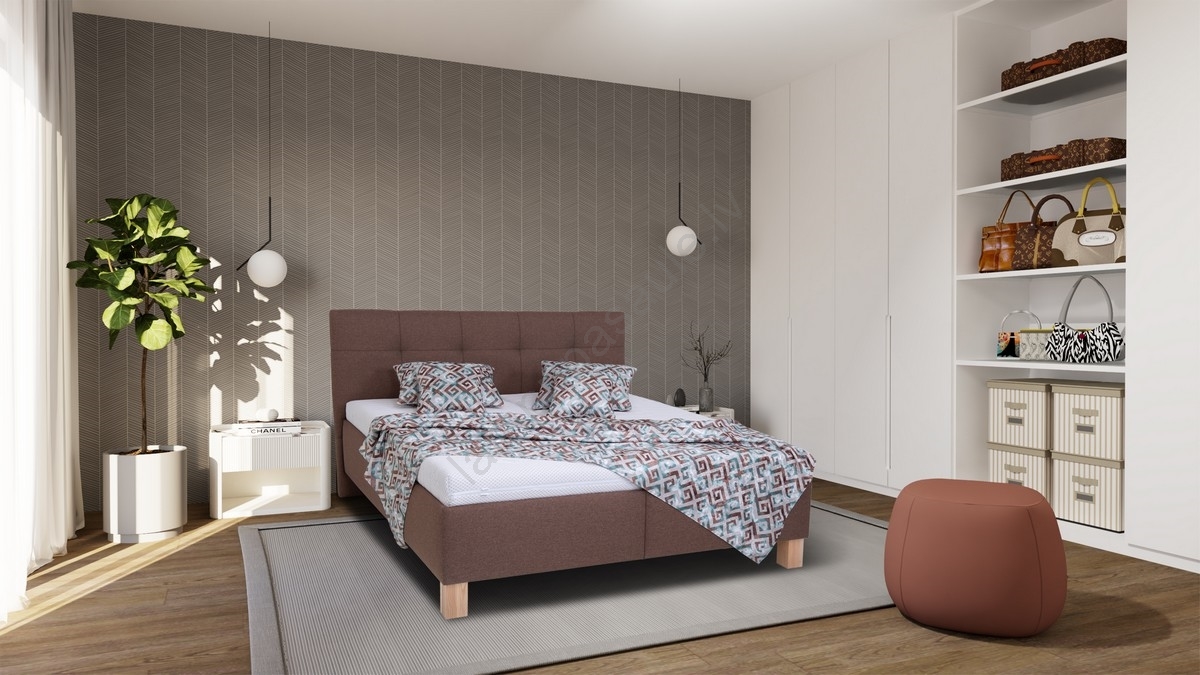• Polsterēta gulta MARIA 160x200 cm ar matraci un uzglabāšanas vietu, brūna