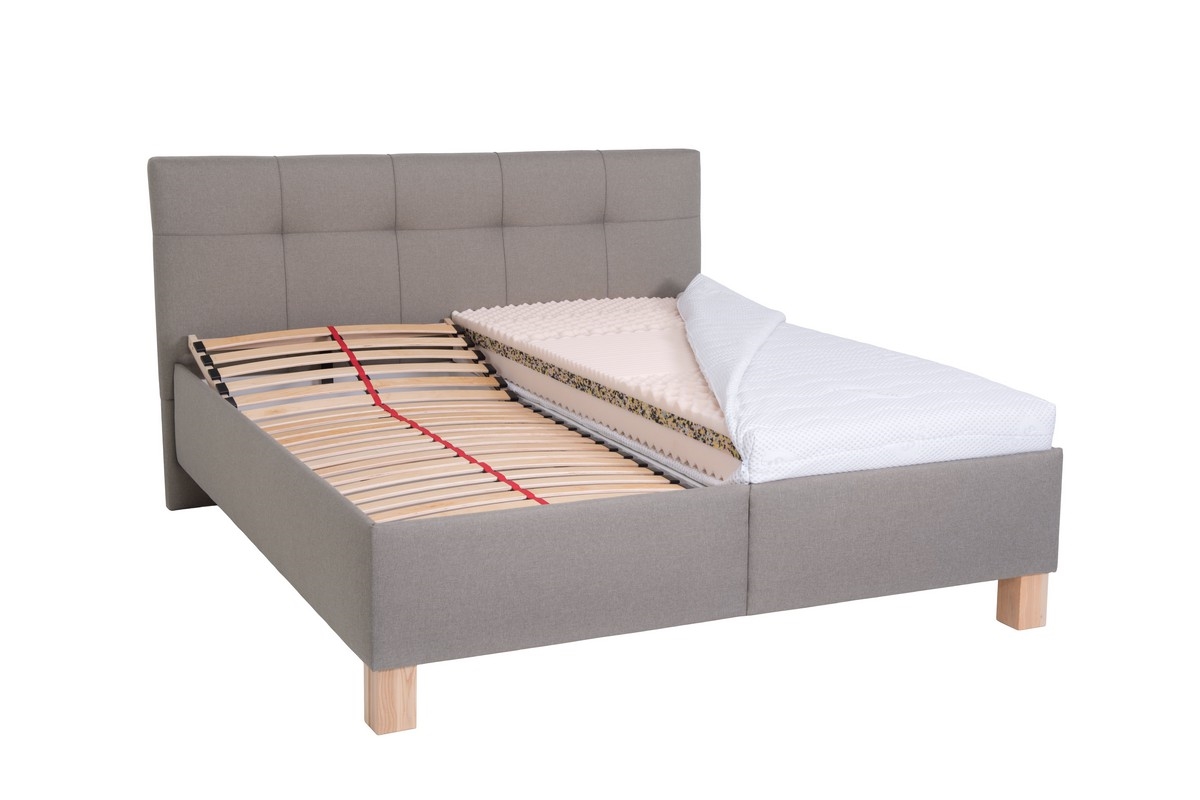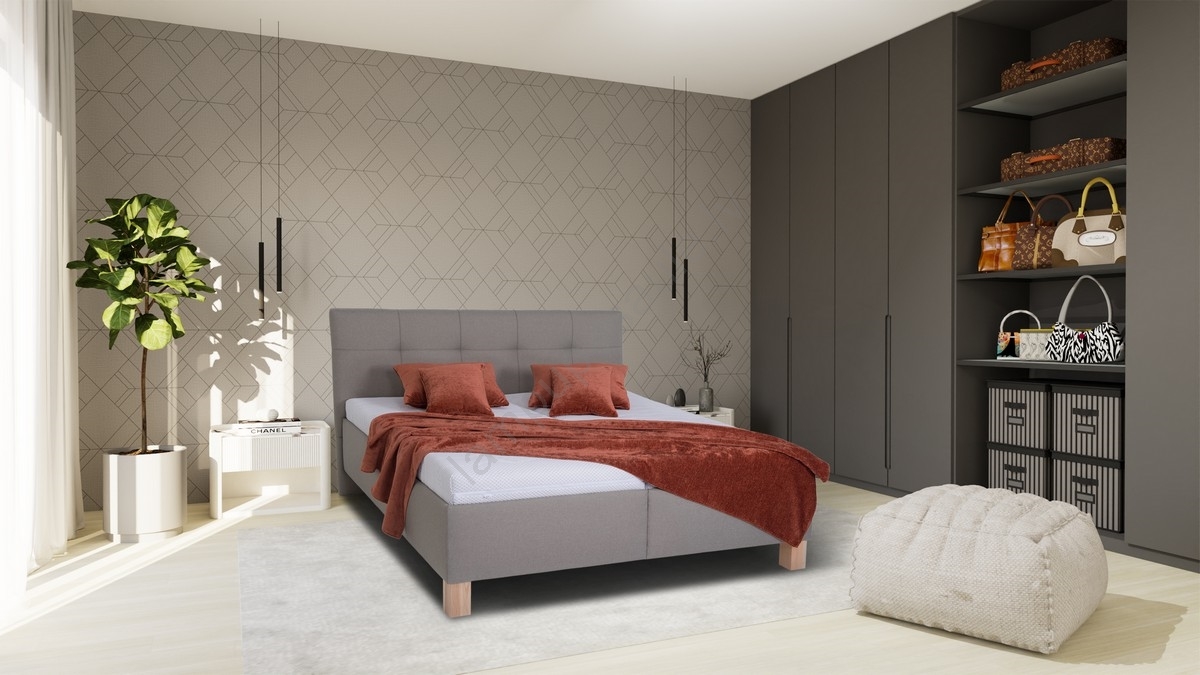 • Polsterēta gulta MARIA ar matraci un uzglabāšanas nodalījumu, 160x200 cm, pelēka