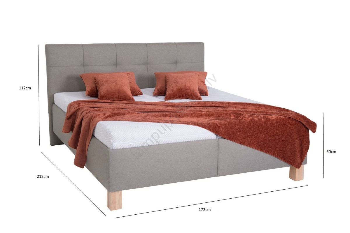 • Masīvkoka kājas nodrošina gultas stabilitāti un izturību.