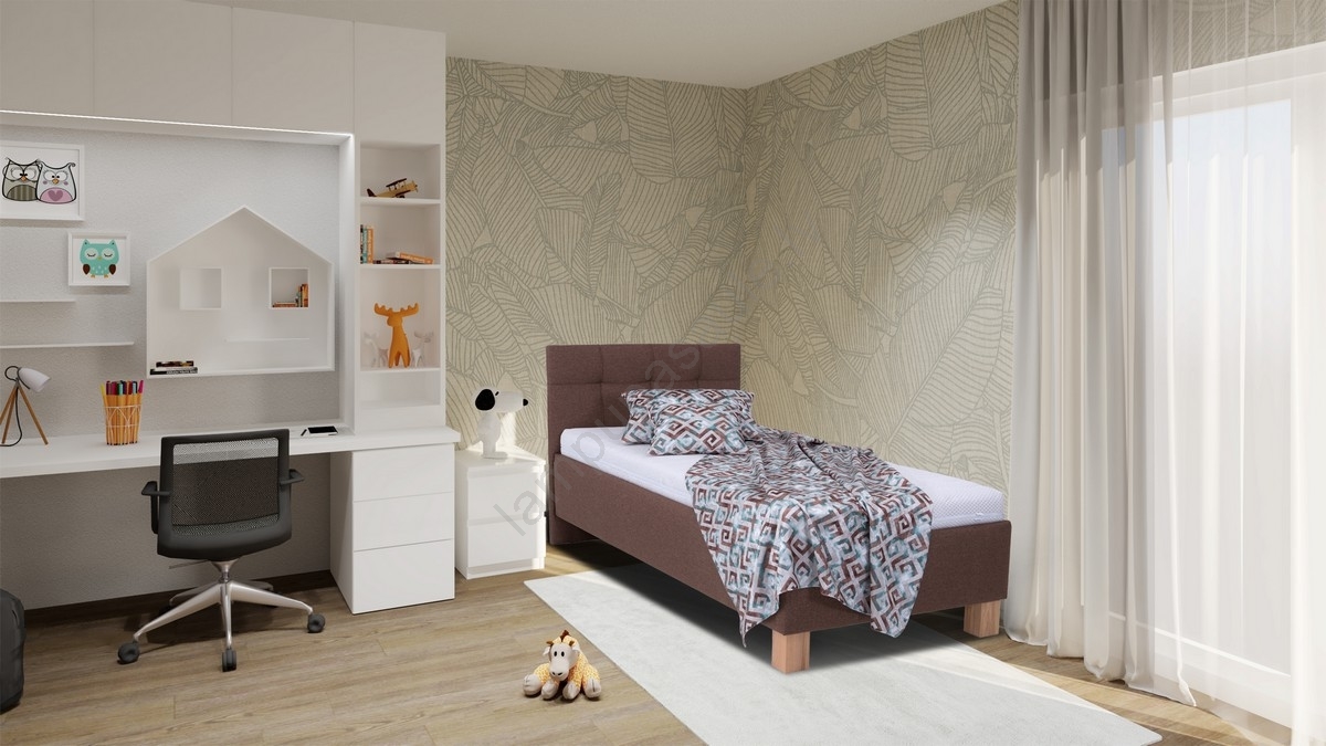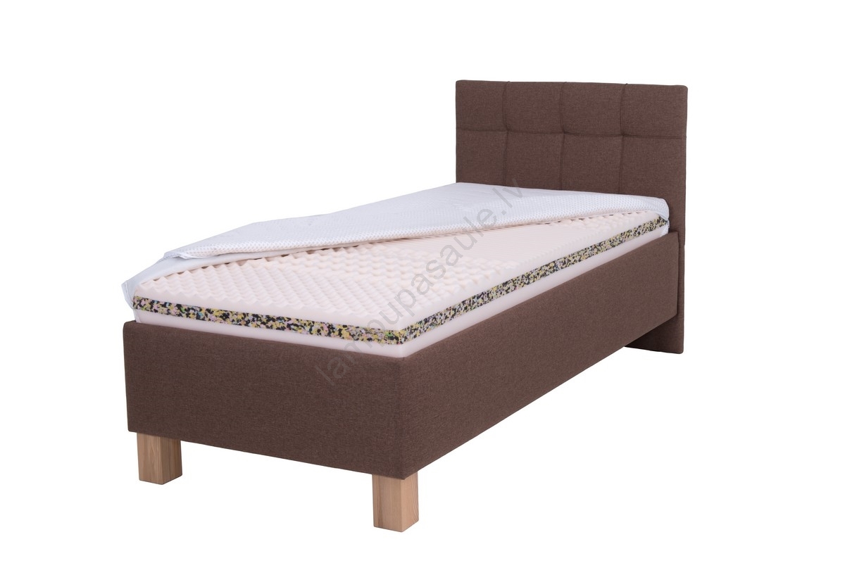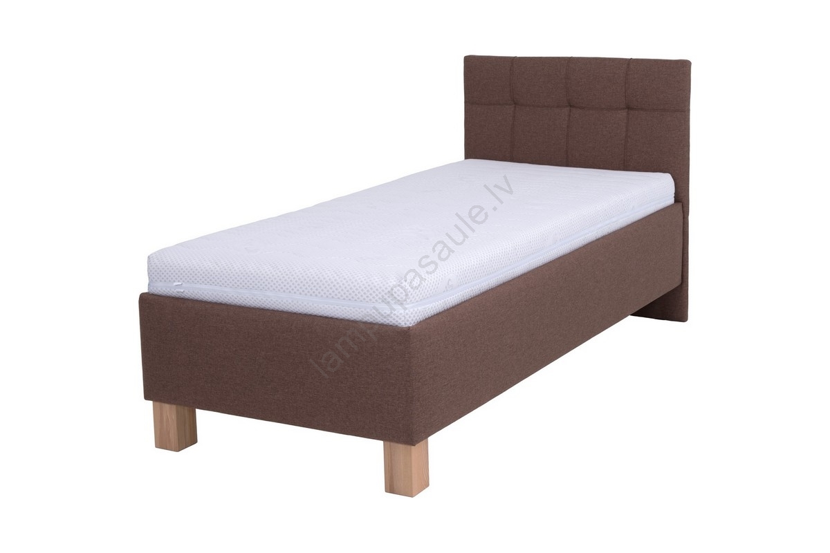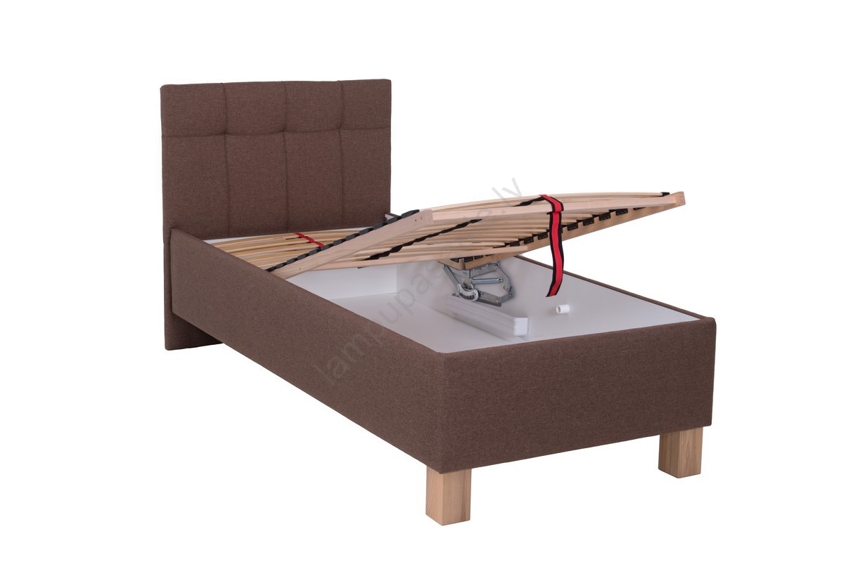 Tapisēta gulta MARIA ONE 90x200 cm ar matraci un uzglabāšanas vietu, brūna | Lampupasaule
