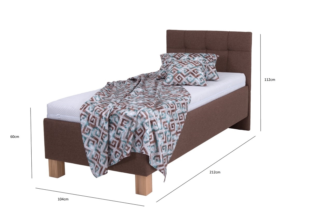 Tapisēta gulta MARIA ONE 90x200 cm ar matraci un uzglabāšanas vietu, brūna