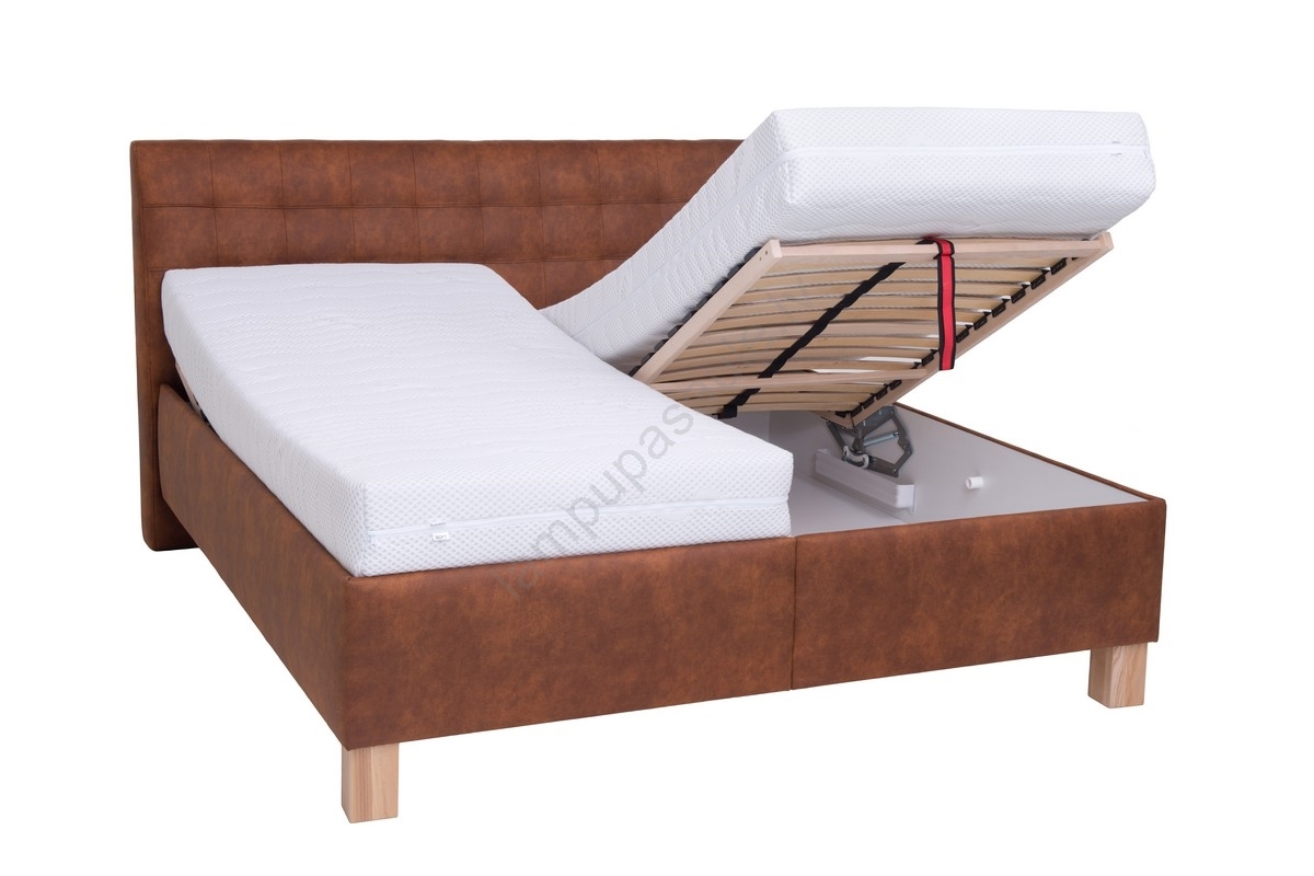 • Polsterēta gulta ar ērtu matraci un ietilpīgu uzglabāšanas nodalījumu VIOLET 160x200 cm konjaka brūna