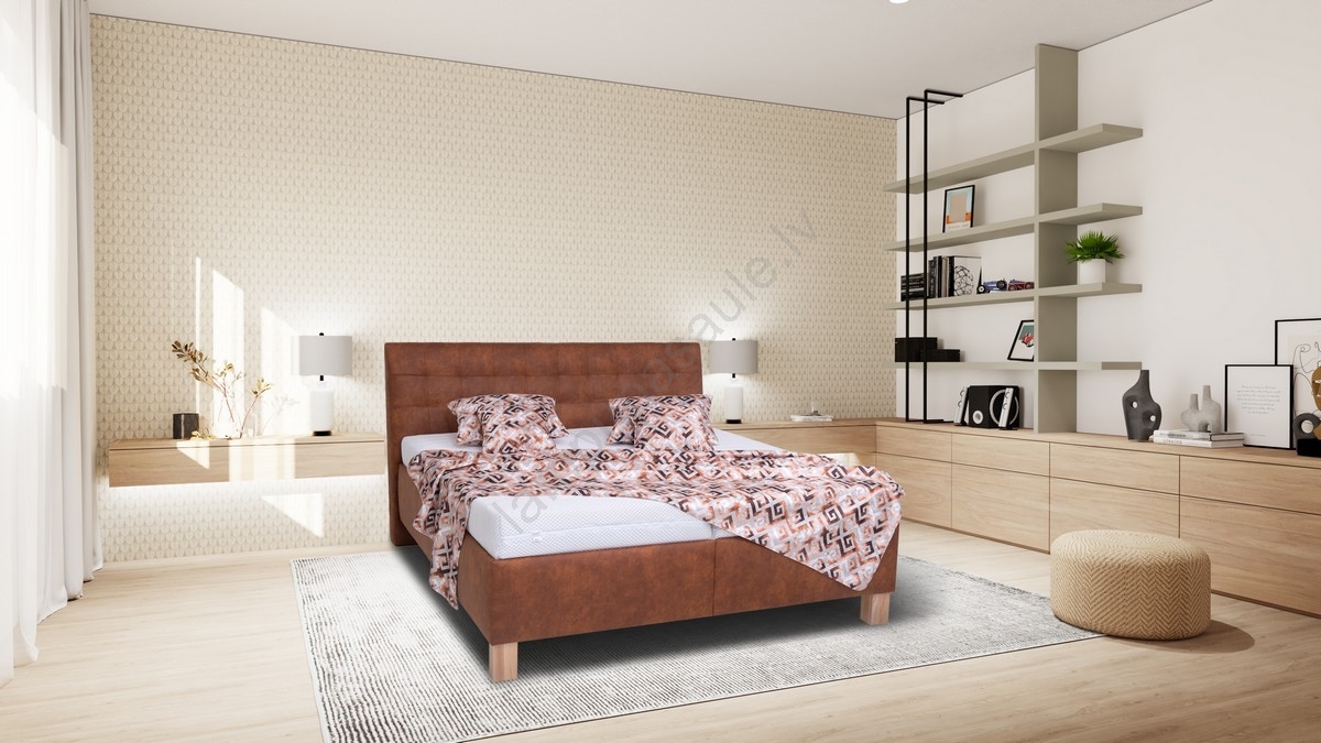 • Polsterēta gulta ar matraci un uzglabāšanas nodalījumu VIOLET 160x200 cm, konjaka brūna