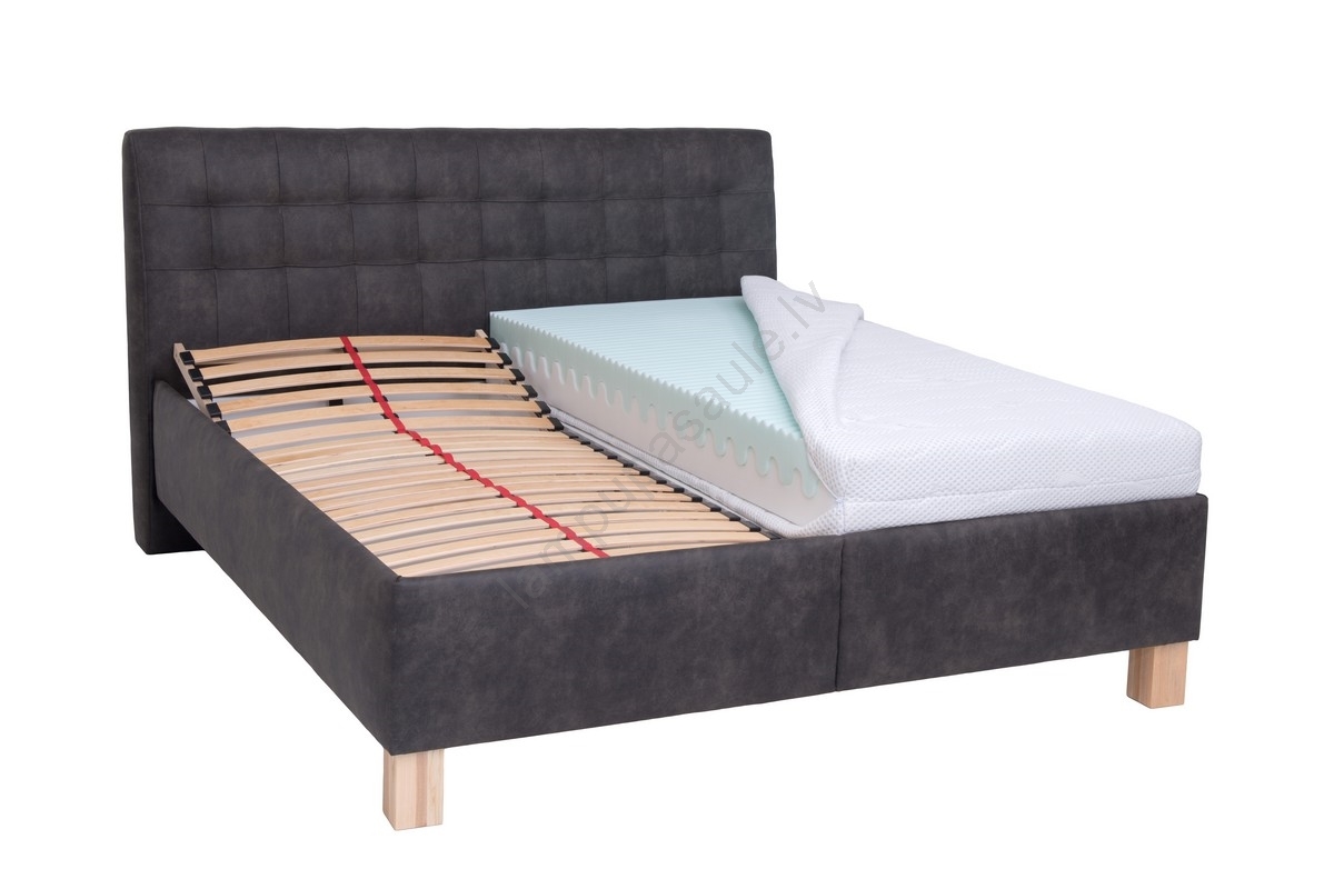 • Polsterēta gulta VIOLET 160x200 cm ar matraci un uzglabāšanas vietu, antracīts
